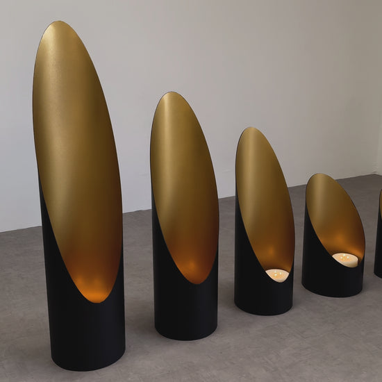 Unsere Flammenschale vereint edles Design mit gemütlichem Kerzenschein. Das hochwertige Metallgehäuse ist innen mit einer luxuriösen Goldveredelung versehen, die das Kerzenlicht auf faszinierende Weise reflektiert und den Raum in ein warmes, sanftes Leuchten taucht. Sie verleiht indoor wie Outdoor, warme atmosphärischer Lichterakzente und ist in verschiedenen Größen erhältlich.